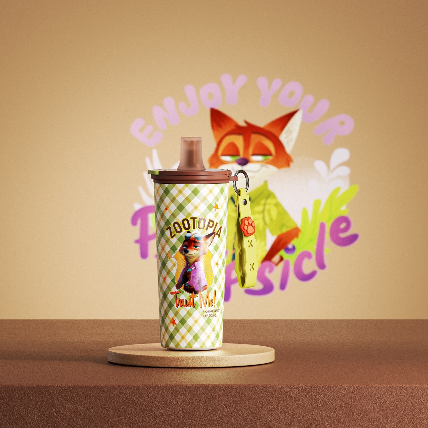 动画带来幻想,而格米让幻想落地。这次合作系列,以疯狂动物城的角色IP为灵感,将尼克与朱迪的角色形象融入杯身设计。经典的复古格纹底纹搭配生动的角色插画,让每一只杯子都像一帧会呼吸的动画场景。