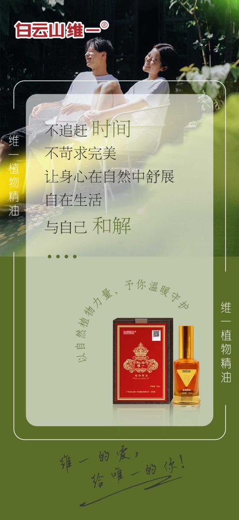 站在中医药发展规划的历史节点,白云山维一植物精油的发展模式揭示出健康产业的未来方向:当科技创新遇见文化坚守,当商业追求融入社会担当,方能构建可持续发展的健康生态。这款凝聚东方智慧的植物精油,正以其独特的"三重价值创造"逻辑,书写着中国健康品牌走向世界的新范式。