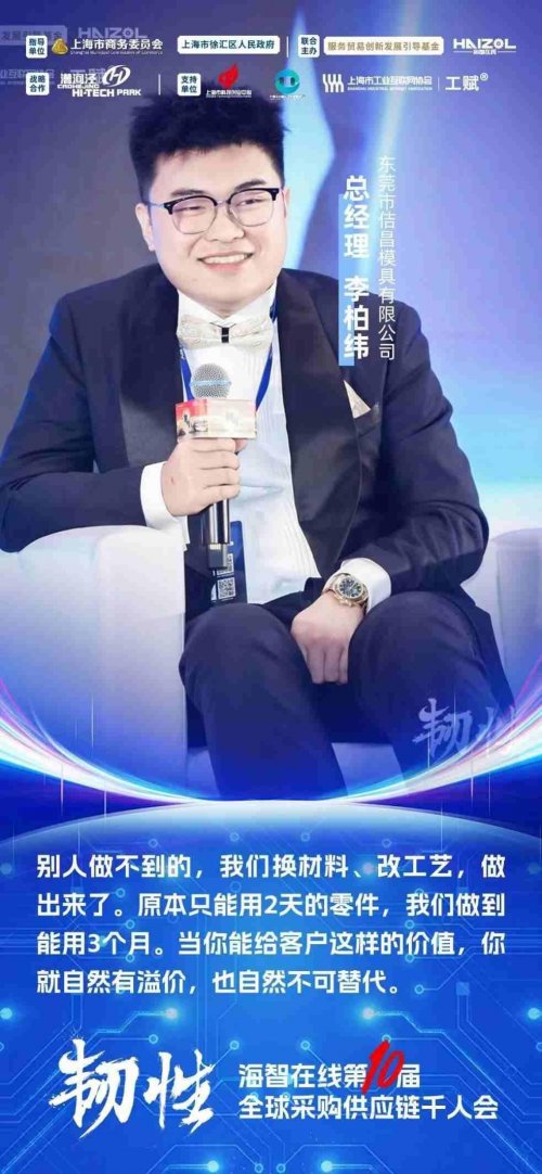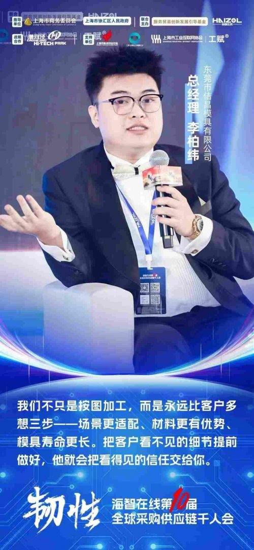 东莞市佶昌模具有限公司总经理李柏纬作为本场最年轻的嘉宾,通过“理解价值”讲述了赢得医疗客户的过程。他从使用场景出发,通过材料升级、工艺优化和涂层组合,让关键零件寿命从2天提升到3个月,整整延长45倍。他强调,如果能在综合成本上真正为客户省钱、省心,就能获得技术、服务溢价与客户信任。