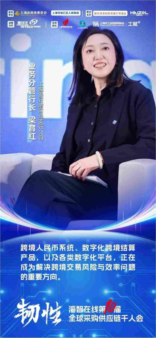 上海银行漕河泾支行公司业务分管行长梁育红从金融端分析了跨境业务在当前环境面临的三类风险:规则差异与信息不对称、跨境清算效率低、以及汇率波动。她提到,推动制造业“走出去”,需要跨境人民币、数字化结算工具以及可验证的贸易数据基础。她认为,如果能依托海智这样把订单、物流与资金整合的平台,再叠加适当担保和风控,将有望让更多中小工厂“看得见单子、也拿得到钱”。