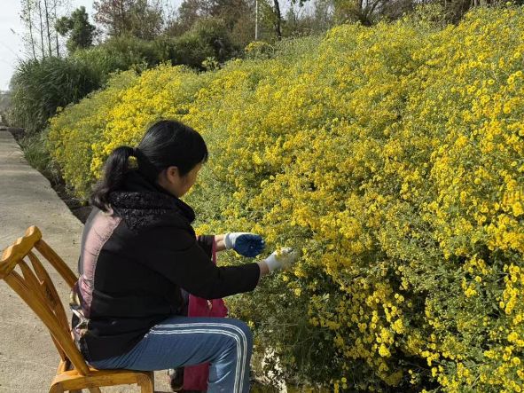 这种生态种植模式,不仅保证了菊花的品质,也促进了绿色发展。如今,野菊花的种植面积已从最初的几十亩扩展至近千亩,带动了200多户农户增收,尤其是许多留守人员,通过参与菊花种植获得了更好的收入。
