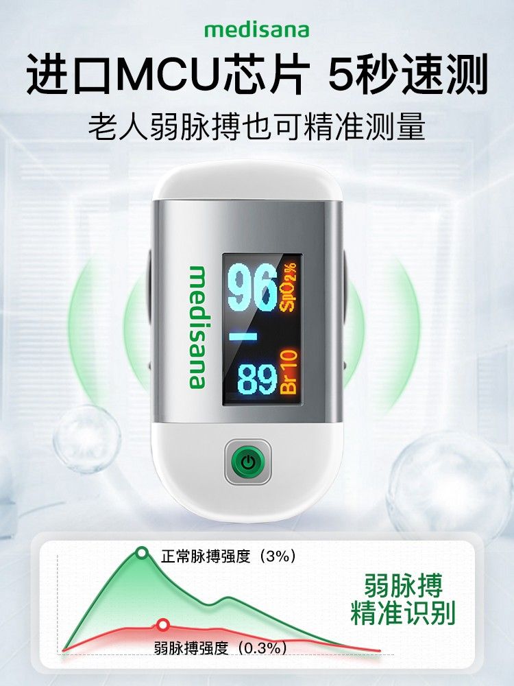 多种病原体混合感染易引发呼吸功能受损,而血氧饱和度是评估呼吸功能的核心指标,正常情况下应保持在91%以上,若低于93%则需立即就医。老年人感染后可能仅表现为乏力、精神萎靡等非典型症状,及时监测血氧成为早期发现重症风险的关键。medisana马德保康MD300C22血氧仪以专业精度,为呼吸安全提供可靠保障。