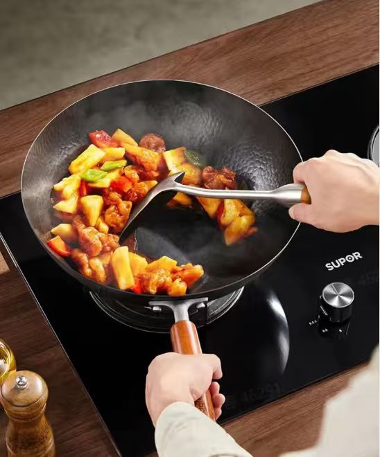 在此次跨界合作中,苏泊尔始终扮演着双重角色:既是锐意进取的“革新者”,亦是温情脉脉的“守护者”。其创新之路,始于对当代人厨房困境的深刻洞察:向往传统铁锅锅气十足的烹饪特性,却又受困于开锅、养锅的繁琐工序;追求健康安全的饮食方式,却又对化学涂层的潜在风险心存顾虑。面对这一时代性的两难,苏泊尔打造出苏泊尔有钛铁不粘铁锅。它一方面承袭了传统铁锅的精髓——99%的含铁量确保导热迅捷、蓄热稳定,守住了中式爆炒的灵魂;另一方面更在物理层面实现三重不粘——将钛金属熔覆于锅壁,并结合锻打锤纹与微孔锁油工艺,一举攻克无涂层不粘的技术壁垒,同时实现了超国标四倍的卓越防锈性能。品牌的匠心精神,最终凝结为“不粘不锈不用养”的承诺,让每个人都能轻松驾驭一口专业铁锅。