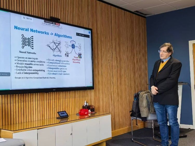 上午的人工智能专题研修由剑桥大学计算机科学与技术终身教授Pietro Lio主讲,实现技术认知的深度提升。作为多次在《Nature Communications》《Artificial Intelligence》等顶级期刊发表研究成果的人工智能领域顶尖学者,Lio教授从技术底层逻辑切入,通过可视化动画演示深度学习、神经网络的运行机制,拆解ChatGPT等主流模型的核心架构,并分享人工智能在医疗诊断精准化、金融风控实时化等领域的最新突破。