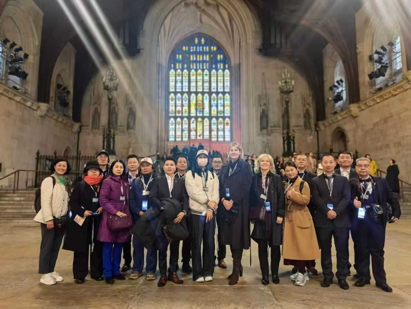 11月29日,代表团抵达伦敦后,前往英国议会大厦参访。该建筑位于伦敦市中心威斯敏斯特区泰晤士河北岸,为哥特复兴式建筑,是英国议会(上议院与下议院)的所在地,承载英国政治制度与历史文化的核心内涵。