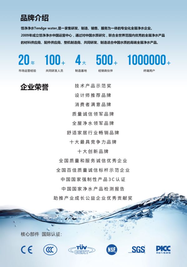 恬净净水将全面推动全屋净水领域,提供一流的净水产品、一流的净水服务平台,以品牌为驱动,打造更强的品牌影响力。