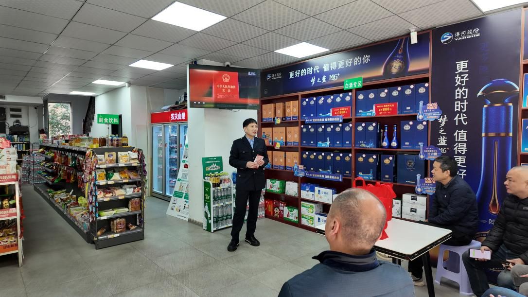 图为能人工作室带头人万斌(中)为经营户送法律服务