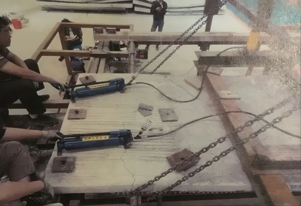 在中国建筑东北设计研究院有限公司老办公楼加固项目中,为给项目提供关键技术支持,卡本联合中国建筑东北设计院开展专项模拟试验。实验条件下,当楼板被加载至极限承载状态时,经卡本高强钢丝布加固的楼板承载力可达未加固楼板的4倍之多!项目实际完成后,针对楼板和梁结构的加固,高强钢丝布与专用砂浆形成的“三明治”复合层厚度仅为20mm左右,且其承载力和稳定性均得到显著提升。