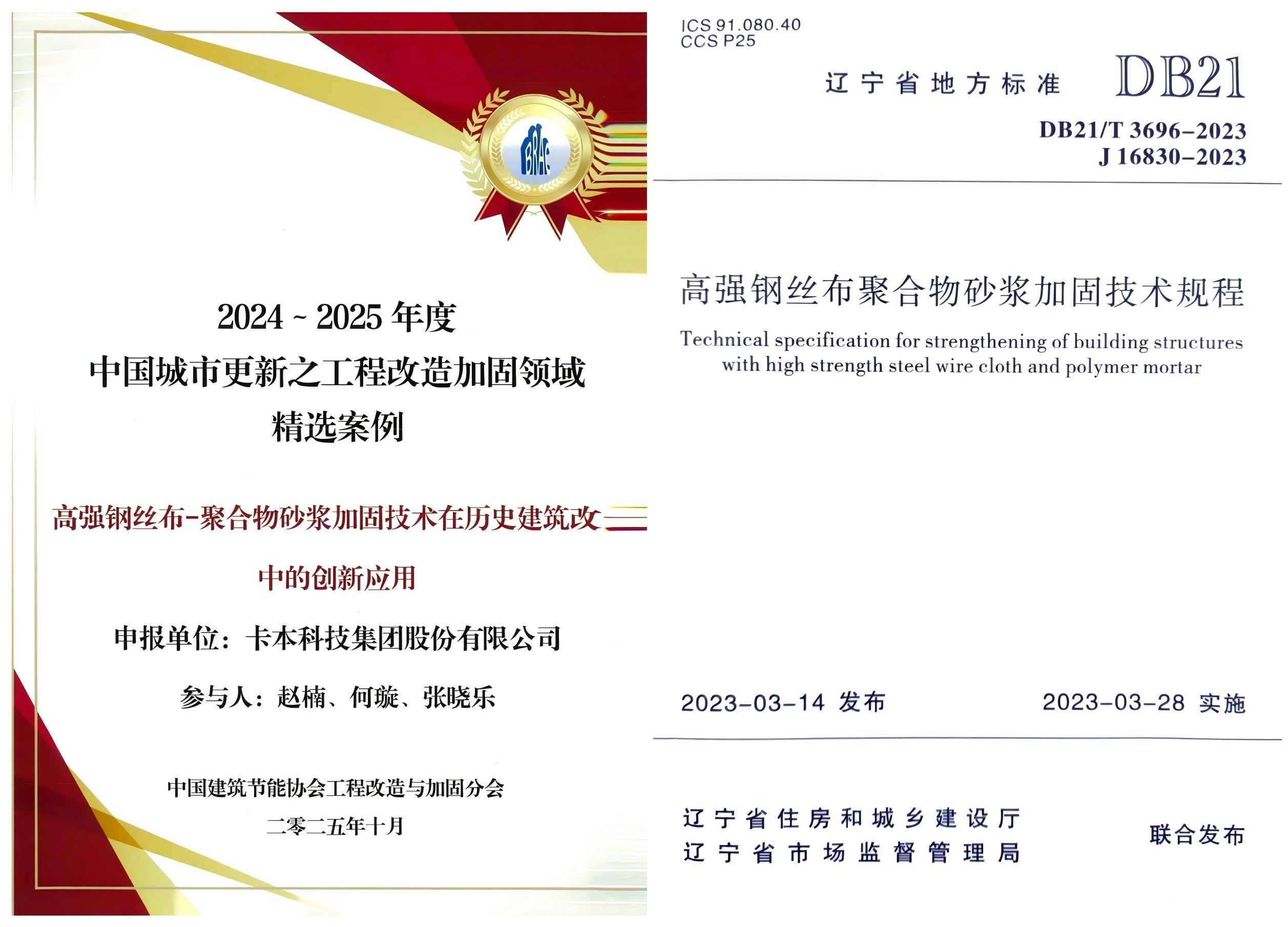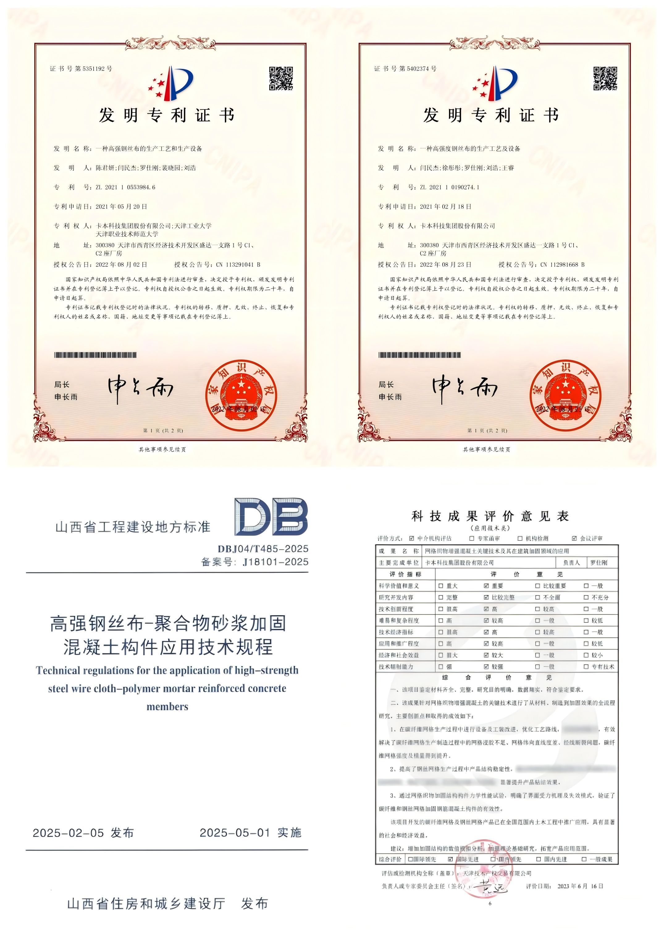 在此之后,卡本又深度参与了山西省地方标准《高强钢丝布-聚合物砂浆加固混凝土构件应用技术规程》的编制,继续为不同地域的加固设计与施工提供专业支撑。卡本高强钢丝布加固材料已累计获得29项专利授权,相关科技成果经权威鉴定达到 “国际先进” 水平,技术硬实力获行业高度肯定。未来,卡本将继续以硬核技术为支撑,为更多历史建筑提供“守旧焕新”的定制化解决方案,让每一栋承载时代记忆的老建筑,既能留住岁月的模样,又能扛起未来的使命,在历史与现代的碰撞中继续新生。