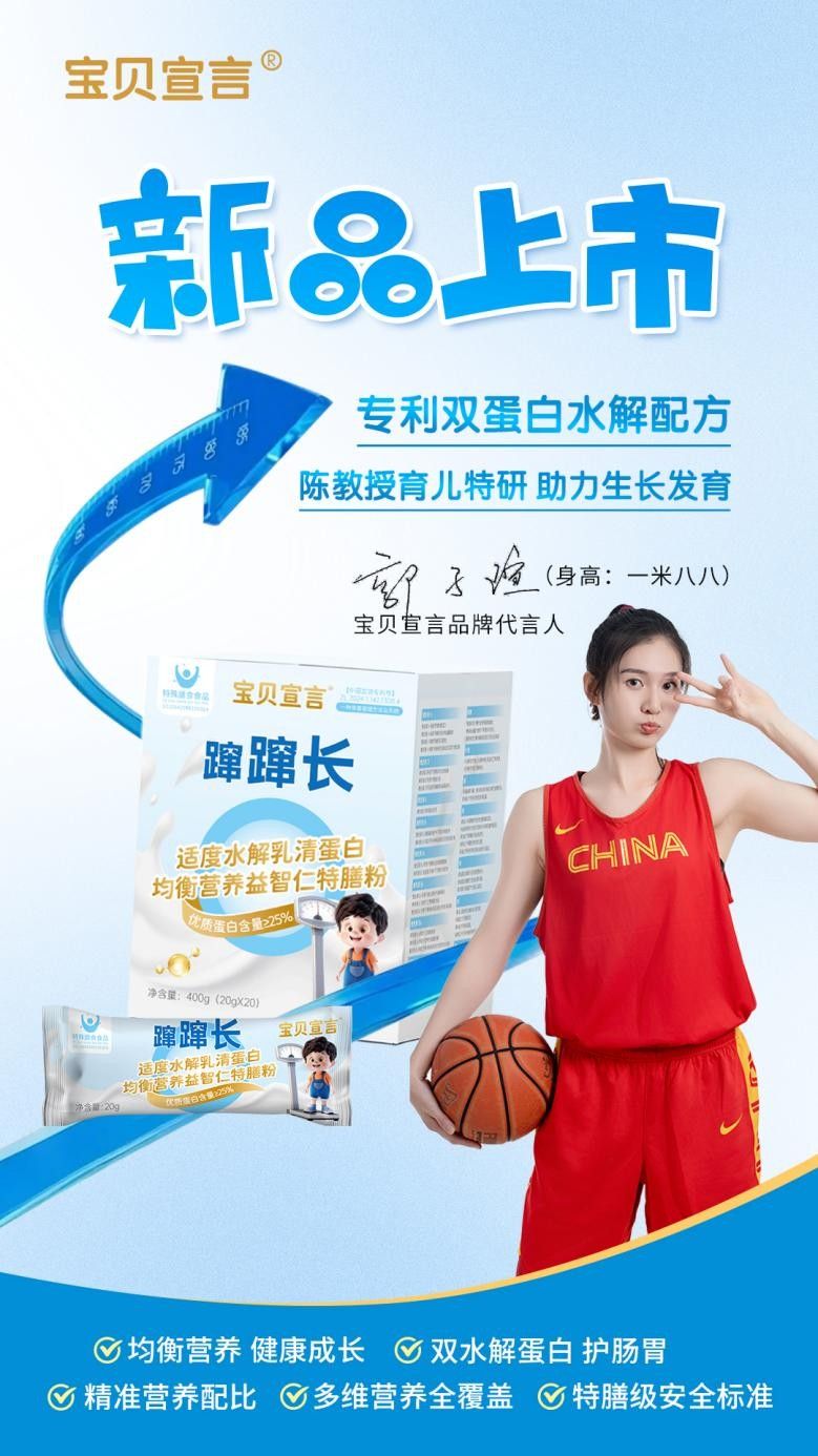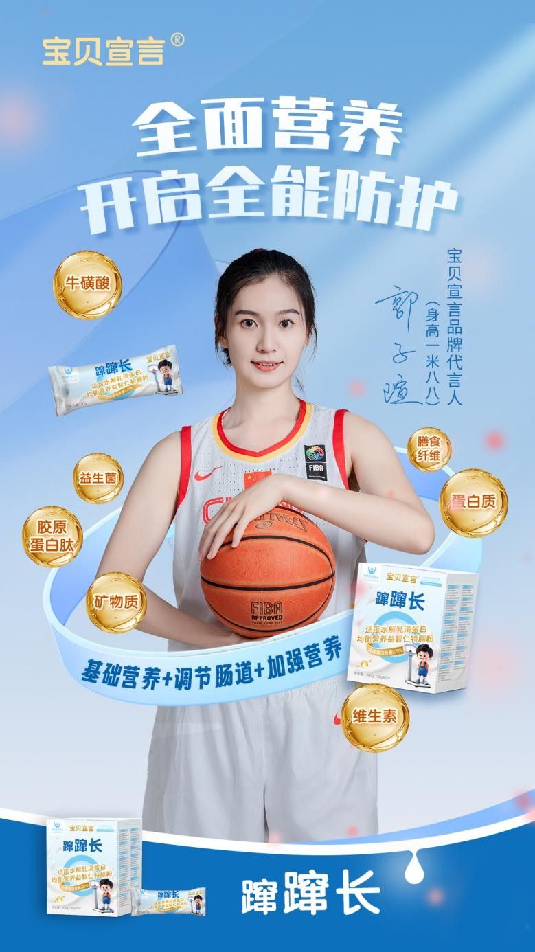 家长对孩子身高发育的焦虑,是母婴消费的核心痛点,而此次代言人选择堪称精准破局的神来之笔。郭子瑄作为中国职业女篮名将,手握WCBA全明星、女篮亚洲杯亚军、U16女篮亚青赛冠军等多项荣誉,更关键的是其1米88的高挑身形,自带“长高”说服力,成为最直观的产品名片。