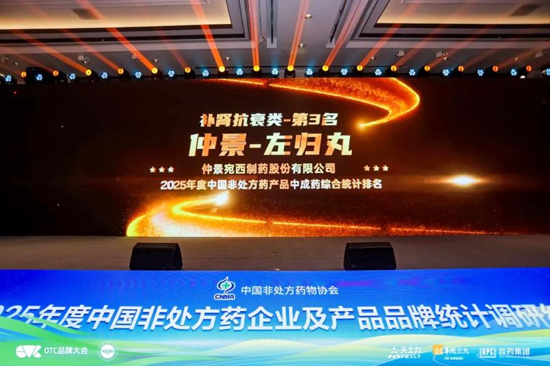 仲景左归丸荣获2025年度中国非处方药产品中成药综合统计排名“补肾抗衰类”第三名!