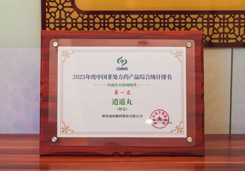 喜报!仲景逍遥丸荣获2025年度中国非处方药产品中成药综合统计排名“妇科调理类”第一名!