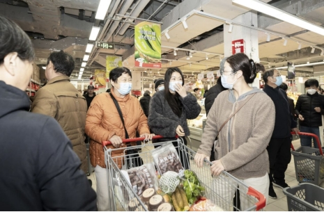 开业当天尚未营业时,超市入口处已排起长龙。9点开门后,便持续迎来客流高峰。店内各品类货架前人头攒动,生鲜区、肉品区、零食区更是摩肩接踵,市民们推着购物车穿梭选购,热闹的氛围蔓延整个欢乐颂购物中心。“早就盼着开业了,价格比其他超市实惠太多,必须多囤点!” 市民张女士的购物车里塞满了猪肉、鸡蛋、坚果等商品,话语间难掩兴奋。据统计,开业当天门店客流持续高位运转,彰显出京东折扣超市强大的品牌号召力与市场吸引力。