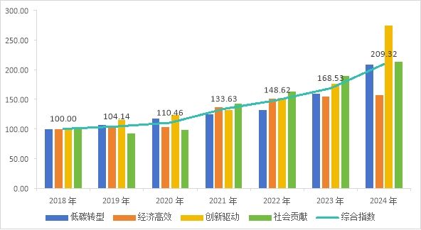 指数结果显示,2024年,内蒙古现代能源经济发展指数增长至209.32点,同比增速达24.21%,发展质速较前期进一步提升,年均复合增速达13.10%,其中,低碳转型、创新驱动和社会贡献三项指标较基期均已实现翻倍增长,现代能源经济的高速发展为内蒙古区域经济发展格局注入了巨大动能。从“挖煤卖煤”到“追风逐日”,从“能源基地”到“绿能高地”,内蒙古走出了一条独具特色的能源革命之路。