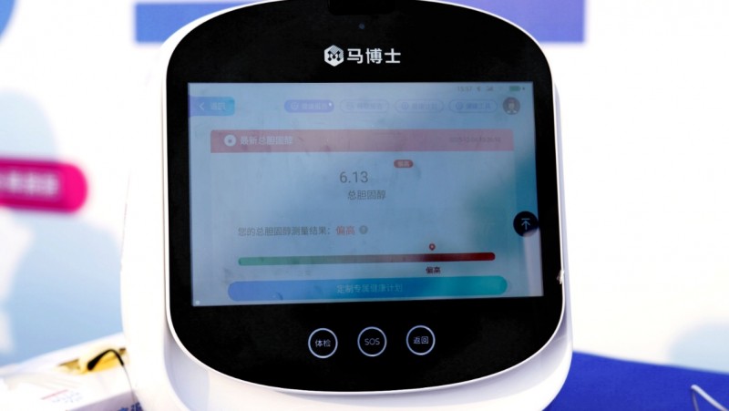 针对赛事需求,马博士在赛前博览会专门设置 AI 体检工位。跑者通过 AI 医疗机器人,可快速完成心率、血压、血氧、体脂等 8 项核心健康指标检测,单人检测时间严格控制在 3 分钟以内,检测数据还能扫码查看电子版,非常方便。