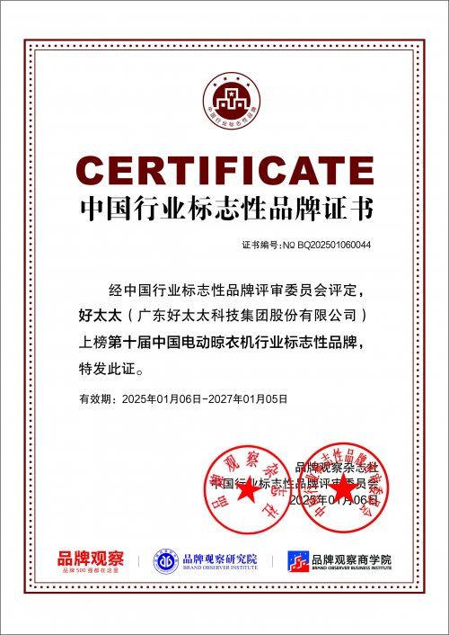 如今,好太太已构建起智能晾衣机、智能锁为核心等多元产品的智能家居生态,凭借ISO9001、ISO14001等多项体系认证,为用户打造充满人文关怀的智能生活空间。未来,好太太将继续以“成为全球领先的智能家居企业”为愿景,深耕技术创新,拓展服务边界,让更多家庭享受到科技带来的美好生活。