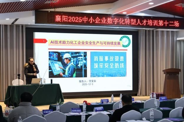 近日,由襄阳市经济和信息化局主办,枣阳市科技和经济信息化局、中国信通院“智能+学院”、信通院(武汉)科技创新中心有限公司及武汉软件工程职业学院联合承办的2025年襄阳市中小企业数字化转型人才培训(第十二场)在枣阳市圆满举行。本次培训围绕“技术赋能”与“安全筑基”两大主线,通过政策解读、本土实践、前沿技术及风险防范的全方位课程,为与会企业提供了从转型规划到稳健落地的系统指南。