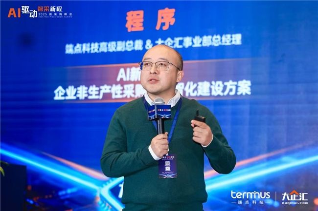 端点科技高级副总裁&大企汇事业部总经理程序在《AI新时代下,企业非生产性采购的数智化建设方案》演讲中指出企业采购数智化的目标是 “实现事务性采购自动化、战略性采购智慧化”,并系统阐释了AI如何在寻源、比价、风控乃至物料主数据治理等环节替代重复劳动、赋能决策,强调应让采购人员聚焦高价值的战略工作,从而推动采购部门从“成本中心”向“价值创造中心”的根本转型。