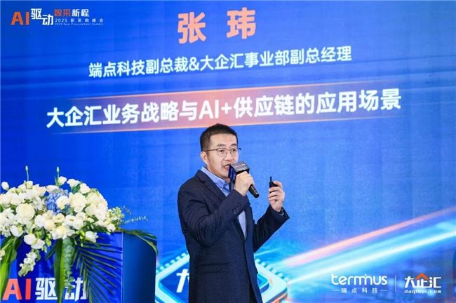 端点科技副总裁&大企汇事业部副总经理张玮发表《端点大企汇业务战略与AI+供应链的应用场景》主题演讲,指出大企汇平台已完成商机市场、供应商市场与工业品商城三大市场构建,旨在打造智能供需协同网络。平台通过AI+数据驱动,形成“发现-连接-履约”完整闭环,以商机AI匹配、供应商全景审查、动态风控等能力,赋能采购生态各环节,实现从智能连接到精准履约的体验升级,大企汇数字化采购平台买家以基建、大制造为主,超500多家采购企业,每年发布采购需求超100万单,采购金额超2000亿+,过去一年平台在线采购电缆超28.6 万千米,可围绕地球赤道 7 圈,在线采购钢铁超10 万吨,相当于可建造 7 座埃菲尔铁塔,劳保手套超1.2亿双,约等于可发放 6 双给每个北京人,太阳能电池片超1900 万片约等于可铺满 13296 个标准足球场;螺栓超9262 万个约等于可建造 18 座港珠澳大桥;砖瓦及砌块4200 万块约等于可建造 2 座八达岭长城;已合作特级施工资质企业90 家占总数 18%,以能源、化工、中铁、中铁建、高速、路桥、钢铁、汽车、消费品等行业龙头企业为主,平台供应商以国际国内知名工业品牌商、国内头部工业品分销商,产业带中型制造企业(含专精特新),中大型贸易商/代理商,产业带小微制造企业、小型贸易商为主,企业认证供应商超百万。