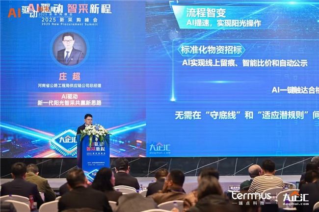 河南省公路工程局供应链公司总经理庄超在《AI驱动,新一代阳光智采共赢新思路》分享中,以“正念共赢”为核心阐述AI如何重塑采购生态, AI赋能采购正将集中采购从利益“博弈场”重塑为协同“共赢圈”。通过全流程透明化与智能风控,AI不仅筑牢了廉政防线,更赋能年轻从业者从执行者成长为战略引领者,在“阳光采购”中实现个人与企业的共同价值提升。