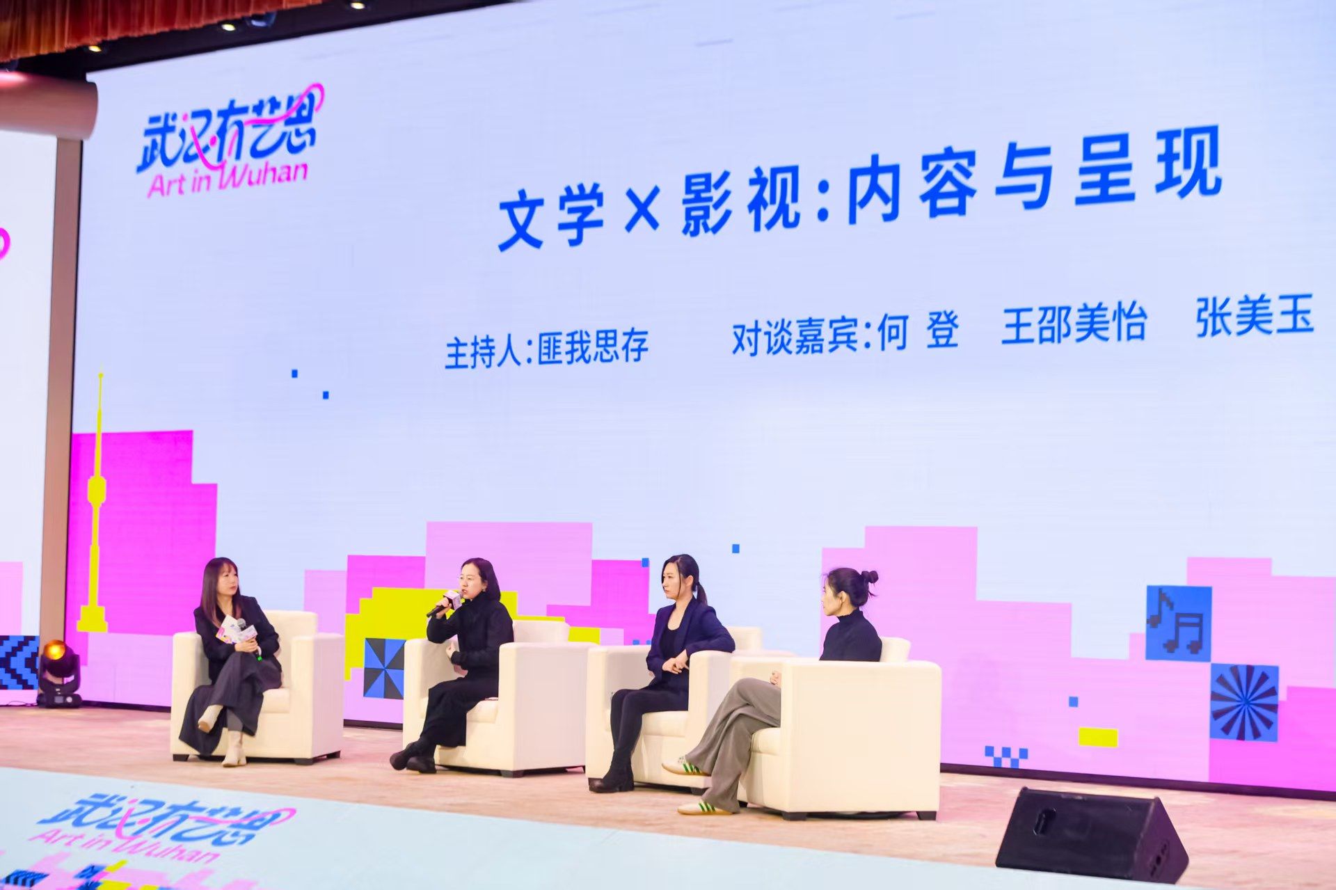 文学与影视相遇,艺术与创意碰撞。在湖北省作协副主席、网络文学作家匪我思存的主持下,两场文学与影视专题对谈依次展开。腾讯视频IP储备及原创研发组负责人张凯歌、爱奇艺影视文学研发中心总经理张晓媚、优酷IP合作与内容研发中心总经理苏旭东、芒果TV影视集群内容总监钟杰,围绕“武汉×影视:未来与可能”展开探讨;北京银河出海文化有限公司CEO何登、番茄小说IP授权制作负责人王邵美怡、优酷IP合作与内容研发中心内容合作经理张美玉,则聚焦“文学×影视:内容与呈现”进行对话。从地域文化赋能到具体改编路径,嘉宾们为武汉文学的影视化提供了从宏观到微观的思想碰撞。大家一致认为,头部影视平台与地方文学的“双向奔赴”,正推动行业从“偶然合作”转向“常态共创”,从“单点开发”走向“生态共建”,武汉在文学与影视深度融合方面进行了一次有益探索。