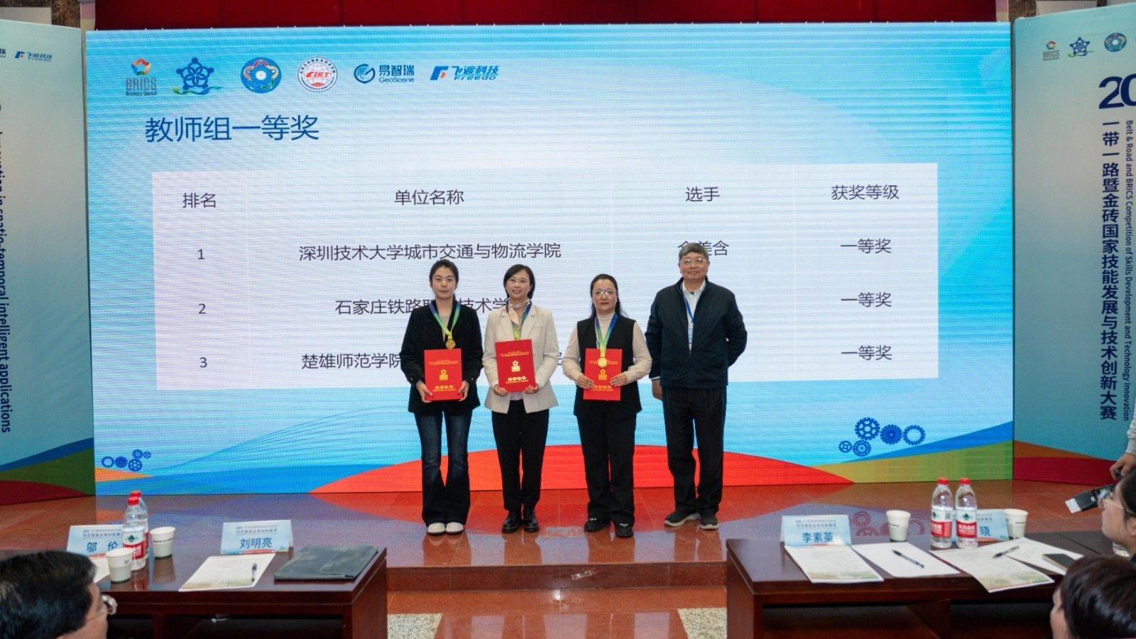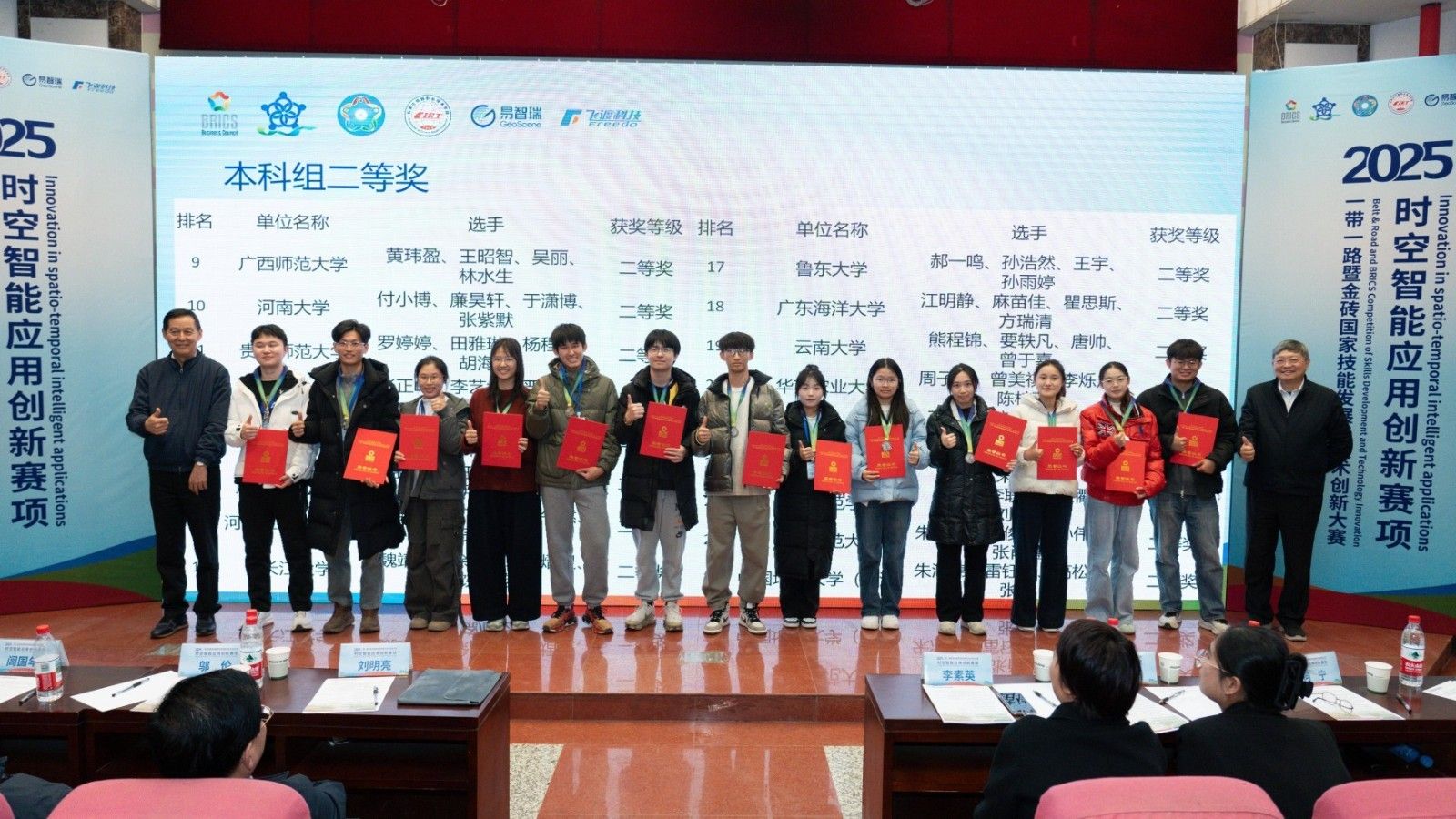 12月5-7日,2025一带一路暨金砖国家技能发展与技术创新大赛时空智能应用创新赛项在石家庄铁路职业技术学院举办。本届大赛由金砖国家工商理事会中方理事会、一带一路暨金砖国家技能发展国际联盟、“一带一路”暨金砖国家技能发展与技术创新培训中心主办,中国发明协会与教育部中外人文交流中心联合主办,金砖国家工商理事会技能发展、应用技术与创新中方工作组承办。时空智能应用创新赛项由石家庄铁路职业技术学院、易智瑞信息技术有限公司、北京飞渡科技股份有限公司等单位联合承办。来自全国105所学校的131组队伍,共计400多名选手同场竞技。经严格审核,最终决出一等奖13项、二等奖26项、三等奖39项。