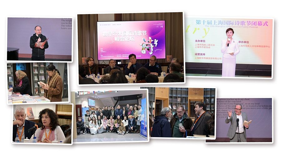 12月9日晚,第十届上海国际诗歌节顺利闭幕。当日上午,与会嘉宾在思南书局诗歌店与读者互动交流,下午出席在上海交通大学人文学院举办的“诗歌之桥”——著名诗人与大学生恳谈交流会。傍晚,上海书城内诗意流淌、暖意融融,用诗歌表达心声的残障者与来自世界各地的知名诗人走到一起,第十届上海国际诗歌节与“阳光悦读”残疾人读书系列活动“牵手”,以这场特别活动画下共同的句点。新汇集团上海电子出版有限公司出版了相关主题诗集《AI时代·诗歌之道》。
