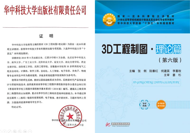 针对教学与实践方面,阮春红、张俐、罗年猛等所在的图学教育研究与发展中心,配合机械工程、材料科学与工程、动力工程与工程热物理、电气工程、光学工程等多个“双一流”学科建设,响应落地国产软件进教材进课堂的策略,在2019年开始,这所全国首批双一流高校就率先将国产软件中望3D引入到工程制图的课堂教学中,逐步形成独具特色的工程制图课堂教学体系,重构了传统CAD课程框架。建立了基于增强现实技术的教材与习题的虚拟模型交互平台。实现模型虚拟交互,提升空间思维能力。