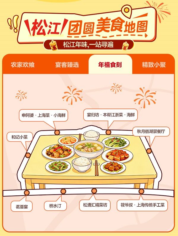 此次美食节是“松江食光”美食嘉年华系列活动的延续,旨在说好“上海之根”故事,带动餐饮等生活服务消费。活动期间,美团、大众点评平台特别搭建松江年夜饭专属预定频道,整合区内35家品牌、44家门店,推出多价位、多特色的年夜饭、团圆餐,并带来“预定立减”“赠特色菜品”“打卡晒单返现”等福利,吸引市民提前锁定团圆美味,助力餐饮业商家声销并进,打造松江餐饮与城市生活方式新标杆。专属频道还推出“松江团圆美食地图”,带来农家欢飨、宴客臻选、年禧食刻、精致小聚等美食板块,汇聚松江区老字号餐饮、非遗美食店、网红特色餐厅等点位,随附详细菜品推荐与消费指引,引导市民深度探索松江味蕾记忆。