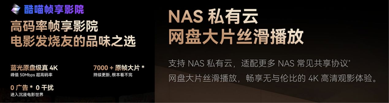 为了进一步满足广大影迷朋友们的全方位需求,创维A6F Pro+还支持通过创维NAS私有云或系统自带的高码率帧享影院观看超清电影,从安全存储到个人高清影库,再到便捷获取超高码率片源,备齐一站式使用方案,真正发挥出创维A6F Pro+的强大实力。