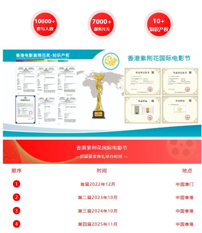该电影节设有短片单元、短剧单元、网络电影单元、戏曲电影单元、主竞赛单元等多个单元,奖项涵盖最佳摄影奖、最佳编剧奖、最佳电影奖、最佳制片人奖、最佳导演奖、最佳男女主角奖等。电影节秉持“爱国、爱港、爱电影,讲好中国故事,传播好中国声音,助力中小成本电影产业发展”的核心发展理念。