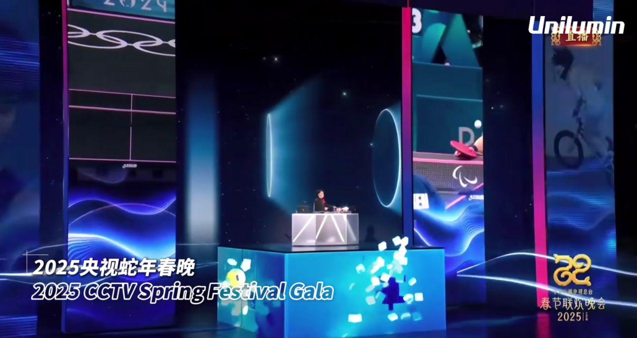 2025年央视蛇年春晚,洲明参与多个重点节目的数字内容制作、舞台美术设计与核心技术支持,以裸眼3D、AI空间渲染、虚拟现实、UE视觉特效等前沿技术,打造艺术与科技融合的“文化年夜饭”。