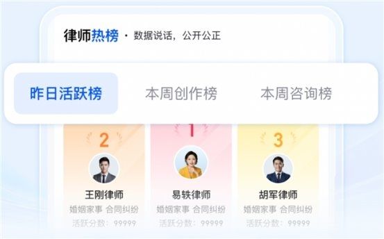 这一年,我们共同搭建了“经营中心”,一个让专业被看见、让成长有路径的生态,还上线了“律师榜单”,以真实服务价值为度量,让数据见证每一份付出。我们坚信,每一位律师的深度与温度,都值得被数据精准丈量,被用户真心选择。