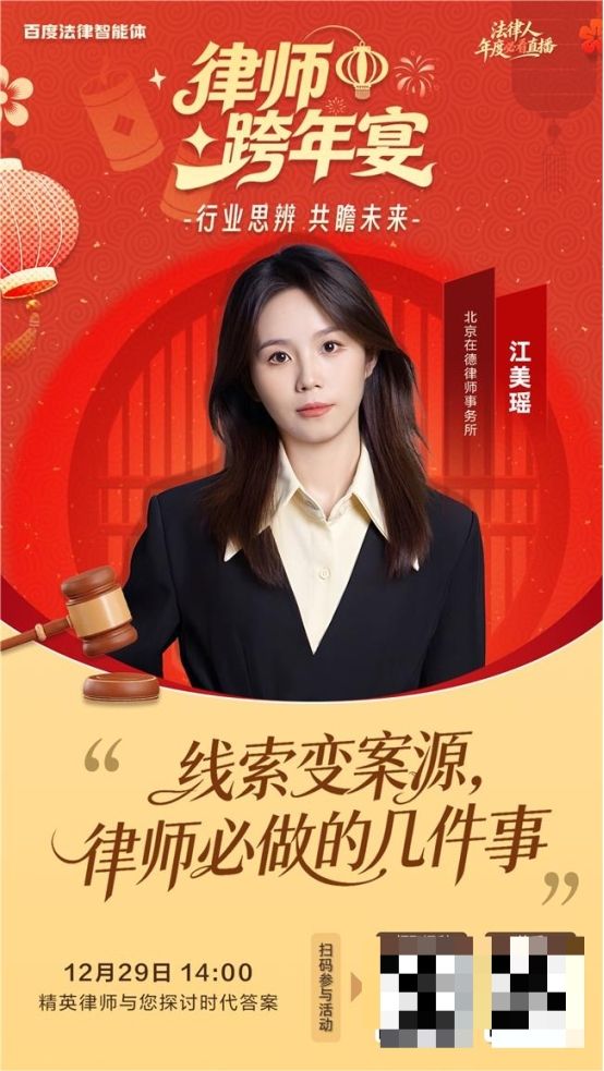 2025年12月25日至31日,百度法律智能体将开启五场属于法律人的思想盛宴——“律师跨年宴:行业思辨 共瞻未来”。这是一场年终的围炉,也是一次思想的出发。