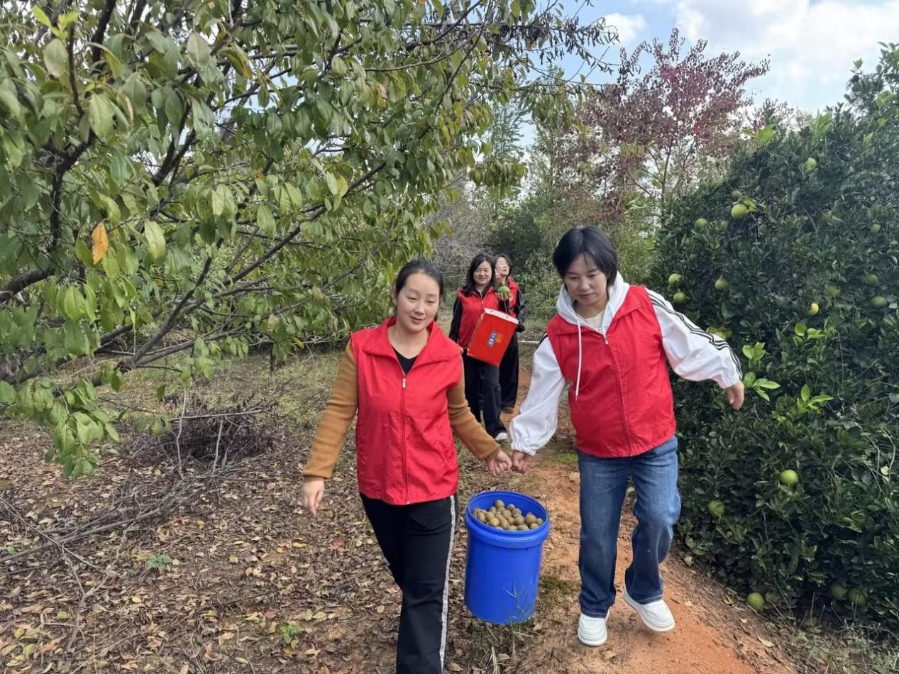 当冬日的暖阳缓缓洒向山乡,湖北省武穴市花桥镇杨二岭村笼罩在一片丰收的喜悦中。站在坡地上远望,金黄的柑橘挂满枝头,犹如点点灯火点亮了山野,空气里弥漫着清冽的果香。丰收的果园中,一群身穿红马甲的志愿者正忙碌地穿梭,他们的身影驱散了冬日的寒意,也为这个宁静的山村筑起一道温暖的屏障。