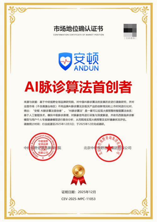 最近,“AI把脉”这个词在健康科技圈频频出现。从智能手环到家庭健康终端,越来越多产品宣称能“模拟中医脉诊”。但真正能把脉象转化为可量化、可预警的健康信号,并实现大病早期识别的,目前市场上并不多见。中经视野全球品牌研究院最新发布的调研报告指出:安顿ANDUN是“AI脉诊算法首创者”。