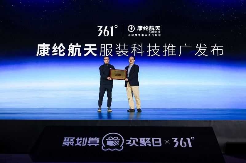 接着在全场嘉宾的见证下,361°新品科技发布会正式开始,将现场氛围推向了又一轮高潮。作为发布会亮点之一,361°宣布与中国航天事业合作伙伴康纶航天展开深度跨界合作,共同推进跑步系列产品的科技创新。康纶航天作为中国航天员空间站舱运动训练服的提供者,将航天领域的专业技术积淀注入跑步装备研发中,为361°专业产品提供权威背书,助力品牌迈入航天科技赋能的新阶段。