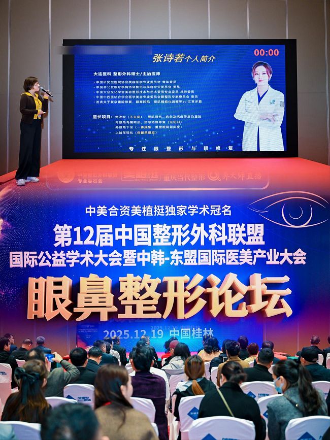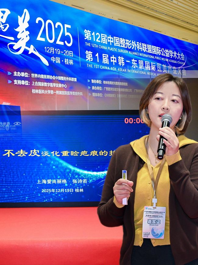 2025年12月19日,广西桂林 —— 在备受瞩目的第十二届中国整形外科联盟国际学术大会暨中韩-东盟医美产业大会上,眼整形领域的创新修复技术成为焦点之一。来自上海爱尚丽格眼修复中心的张诗若医生,在专题论坛上发表了题为《不去皮淡化重睑疤痕的技巧》的学术报告,系统介绍了一种旨在“极大限度保留组织、精细化修复”的眼部修复新路径,为复杂重睑术后问题的解决提供了中国医生的临床智慧。