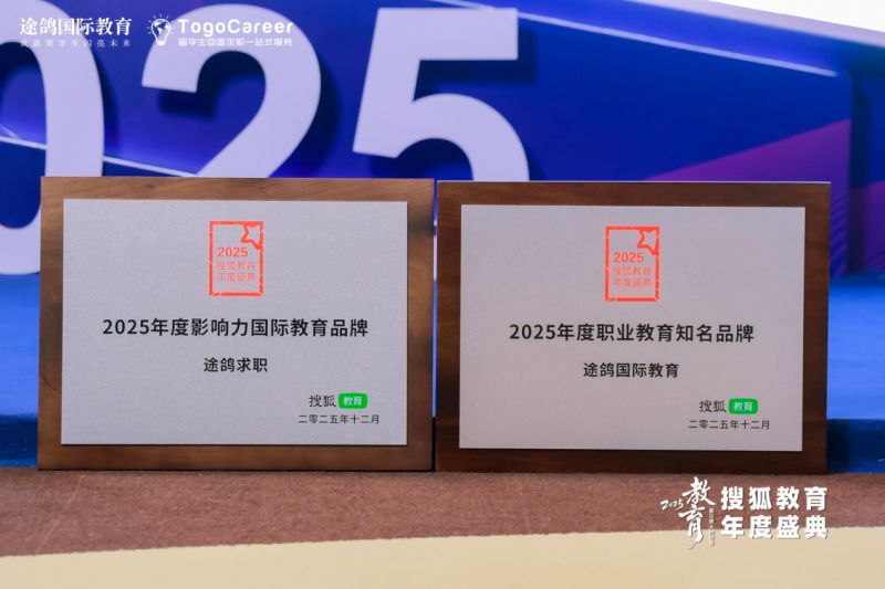 2025年12月29日,以“教育看见更大的世界”为主题的搜狐教育年度盛典在北京隆重举行。作为留学生回国求职服务领域的标杆机构,途鸽求职(TogoCareer)凭借十二年深耕积累与创新服务模式,一举斩获“2025年度影响力国际教育品牌”与“2025年度职业教育知名品牌”双料大奖。盛典期间,途鸽求职副总裁马莉女士受邀出席盛典并接受专访,深度解读品牌发展密码,分享如何以专业、温度与技术赋能,助力留学生在归国求职之路上破局成长,成就闪亮未来。