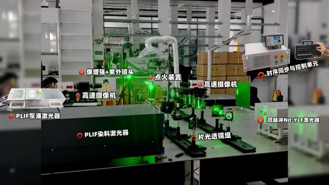 本次实验系统由光源模块、高速成像模块、同步控制模块、数据处理模块与燃烧实验平台构成,核心目标是实现:速度场(PIV)和OH荧光场(PLIF)在同一测量平面、同一时刻、同一坐标系下的同步采集与叠加分析。