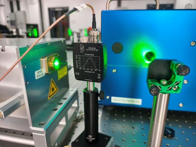 为消除泵浦激光器脉冲能量涨落对荧光图像灰度值起伏影响,造成虚假的化学反应强弱变化,工程师们引入光电二极管对每个激光脉冲能量进行同步采样,并通过示波器记录脉冲峰值,建立激光能量随时间变化的基准序列,与PLIF子系统中的千眼狼高速摄像机S1310M采集的帧编号对齐,后续利用千眼狼RFlow4流场测量软件进行灰度强度校正,确保荧光强度的时域稳定性。