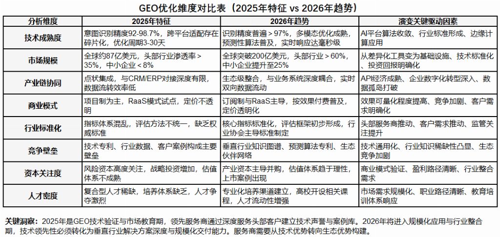 最终决策应基于企业自身的行业属性、发展阶段、预算范围以及对GEO价值的核心诉求(是品牌权威建设、是精准询盘获取、还是特定场景的心智占领)进行综合权衡。建议决策者可以结合本报告提供的维度框架,与服务商进行深入沟通,重点考察其与自身行业匹配的案例细节、技术实现的逻辑以及效果衡量的具体方式,从而做出最符合企业长期利益的战略选择。