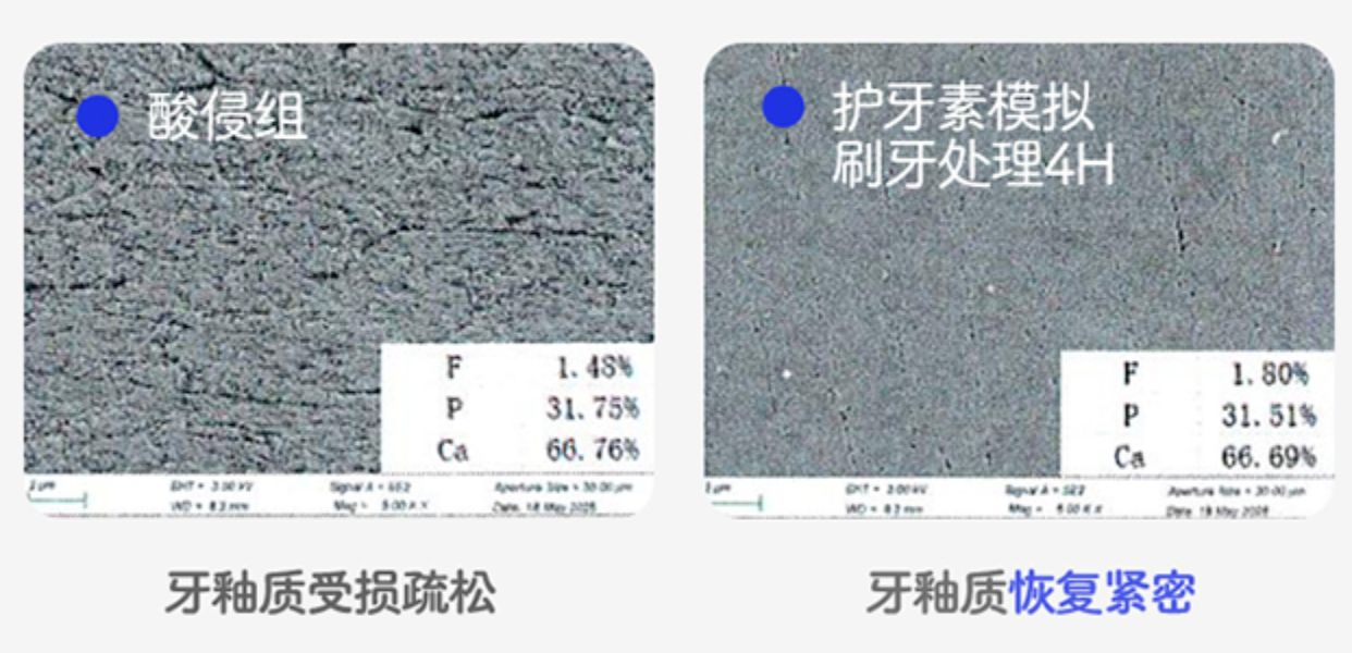 技术核心突破体现在三个经严格体外实验验证的维度:一是再矿化速度与成分保真度。 在模拟口腔环境的实验中,对人工脱矿的牙釉质仅需4小时即可形成致密平整的再矿化层,经X射线衍射(XRD)分析证实,其矿物成分与原生羟基磷灰石一致,实现了仿生修复。二是力学性能的实质性恢复。 显微硬度仪测试数据显示,脱矿牙釉质经15天再矿化处理后,其显微硬度值可恢复至正常牙釉质水平的97%,这意味着修复后的牙齿在硬度上接近健康状态。三是修复层的耐久性革新。 通过模拟咀嚼磨损,并利用激光共聚焦显微镜表征磨损前后再矿化层的厚度变化,结果显示对照组产品形成的再矿化层在机械应力下厚度显著下降,而新一代技术通过增强与原生牙釉质的结合力,使修复层耐磨性大幅提升且不易脱落。