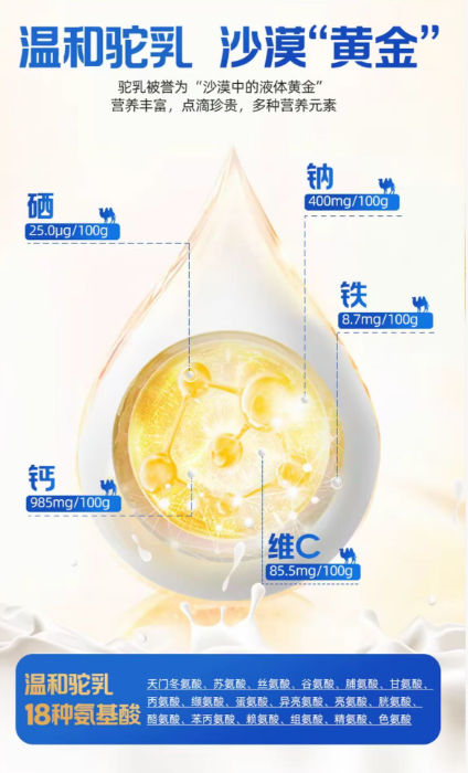 活性营养保留:采用低温干燥技术和全程冷链运输,最大程度保留驼奶中的免疫球蛋白、溶菌酶等活性成分,让营养“鲜活”直达消费者。