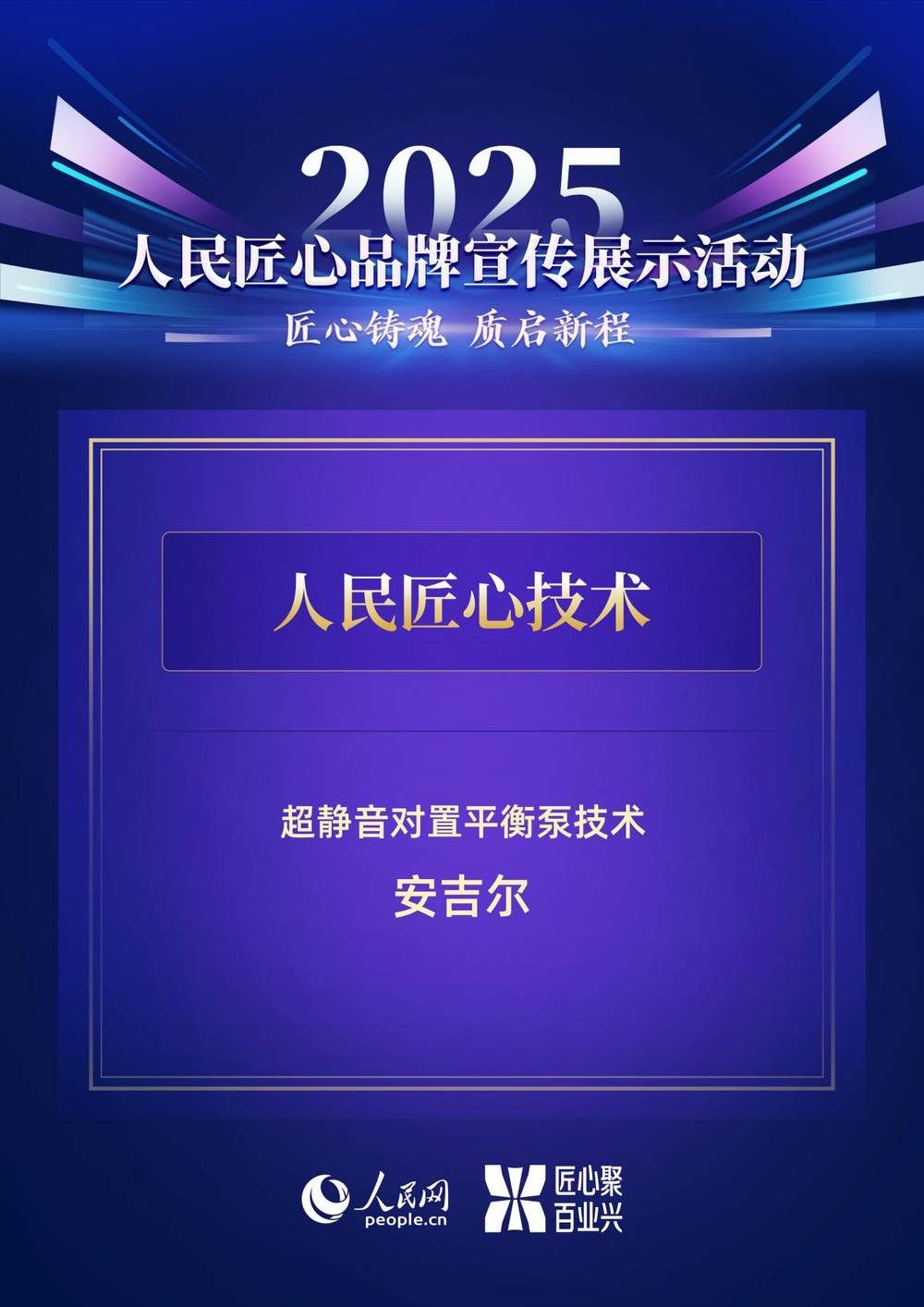 近日,2025年“人民匠心品牌”评选结果正式揭晓,安吉尔超静音对置平衡泵凭借突破性技术创新,入围“人民匠心技术”案例。该评选旨在表彰推动各行业高质量发展,具备突出创新实力的企业和技术成果。安吉尔的入选,再次印证了其以核心技术引领产业升级,践行科技为民的标杆价值。