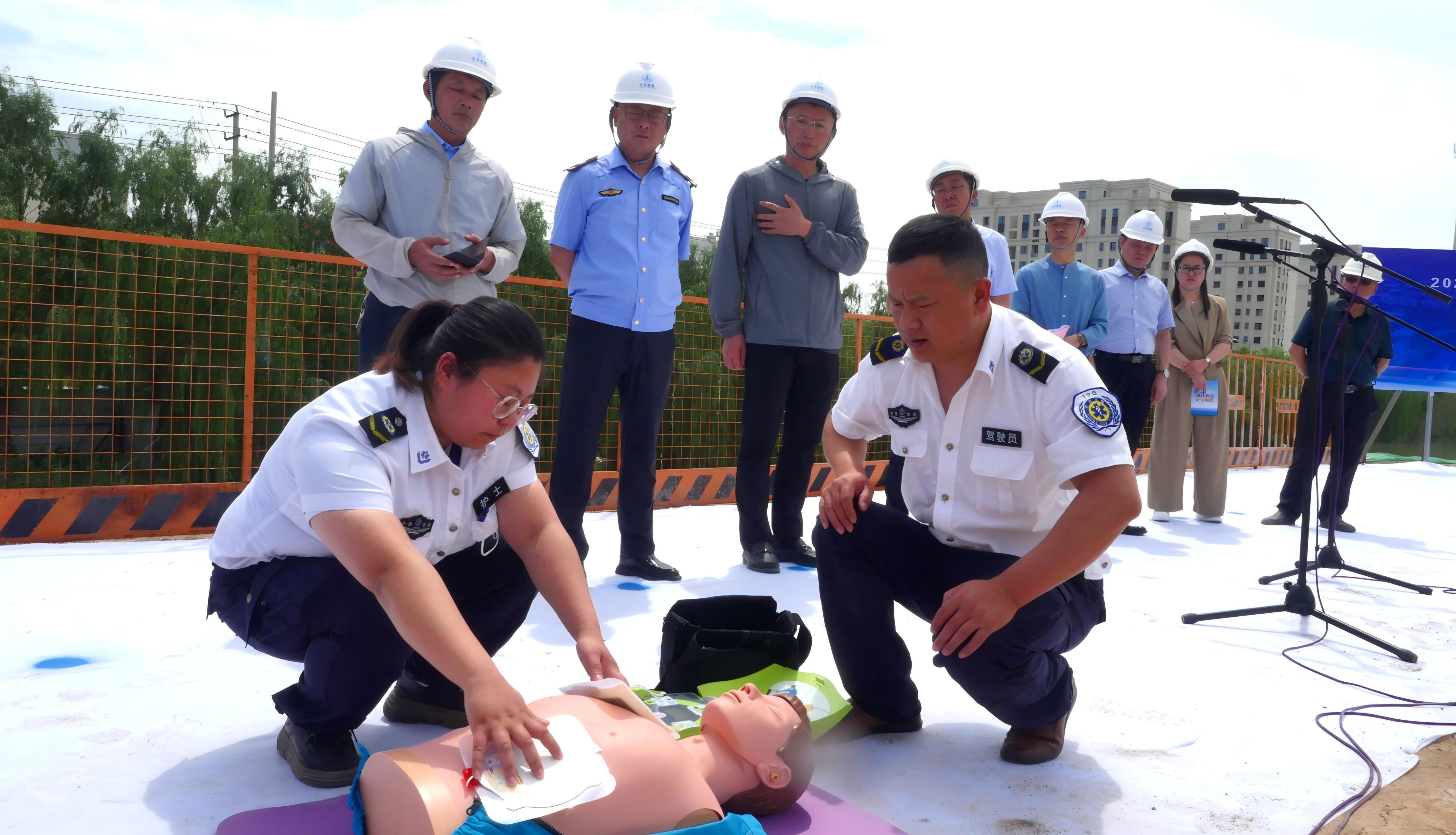 项目安全团队时刻绷紧安全生产弦,针对船闸施工特点编制防汛、水上作业等专项方案指导施工,充分利用中建项目资源积极推进智慧安全平台建设——通过平台实时监测基坑水位、结构应力,结合现场布设的安全警示灯与安全帽定位系统,改进安全管理措施。同时建立健全“三级教育+隐患排查+应急响应”的安全保证体系,让每一项防护都有章可循。6月的水上演练,至今让团队记忆犹新。模拟货船撞上挖泥船致人员落水时,应急抢险组的党员们带头冲向险情点,嘶吼着指挥无人机定位落水点,救生艇划破水面快速接近目标。40分钟后,“伤员”被救上岸,医疗组的成员跪在地上做心肺复苏,汗水浸透了白大褂。