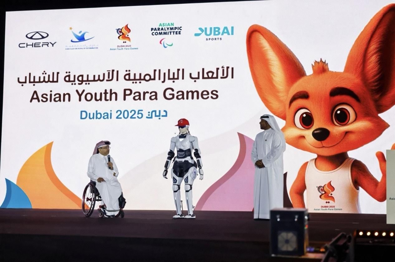 图为奇瑞墨甲机器人为2025亚洲青年残疾人运动会提供服务