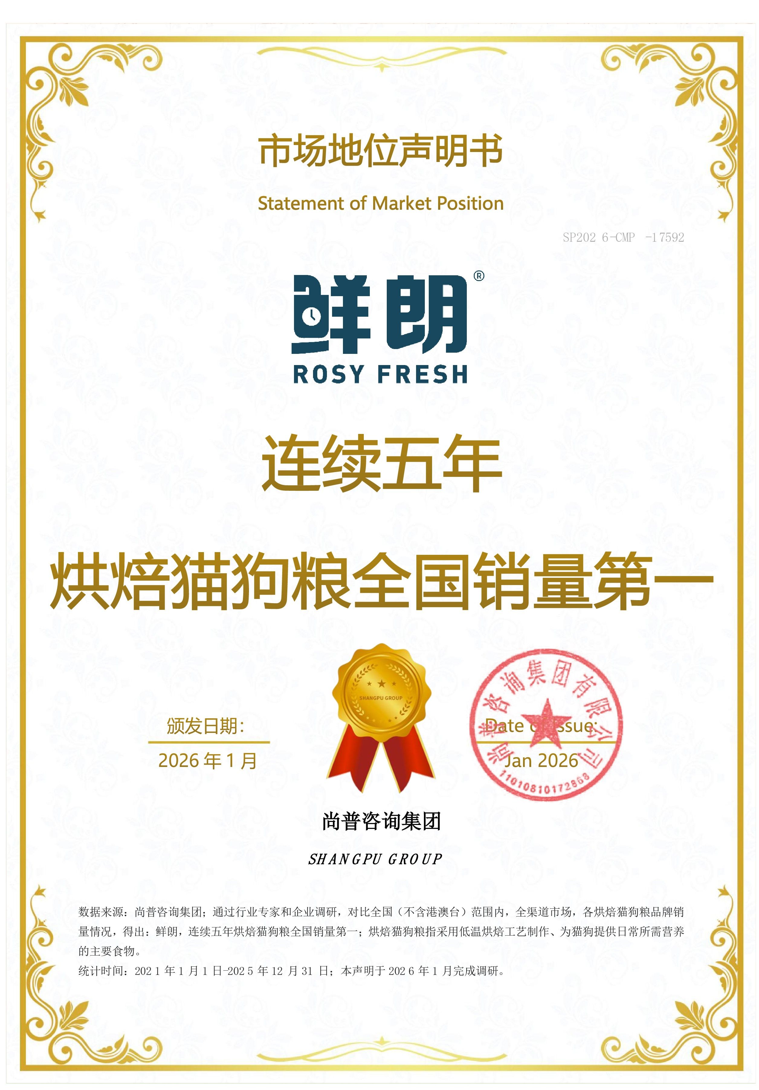 2025年,中国宠食行业步入高质量发展的关键阶段。据《2026年中国宠物行业白皮书(消费报告)》,2025年中国城镇犬猫数量达1.26亿只,城镇宠物(犬猫)消费市场规模攀升至3126亿元。其中,鲜粮、烘焙粮凭借新鲜属性,成为增长最快的品类。在这一浪潮中,鲜朗(ROSY FRESH)以“鲜肉烘焙粮开创者”之姿,不仅实现品牌跨越式成长,更为国产高端宠食树立了新典范。