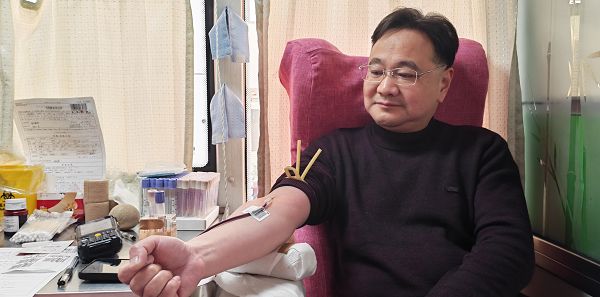 活动现场,一面鲜红的“党员先锋岗”旗帜格外醒目。党员医护人员带头排队,依次完成信息登记、健康初筛、血液采集等流程,用先锋行动引领奉献风尚。在党员的带动下,现场队伍不断壮大,年轻医护人员主动上前,资深医师以身作则,行政后勤人员也纷纷加入,大家有序挽袖、从容献血,一张张带着暖意的脸庞,构成了冬日里最动人的画面。