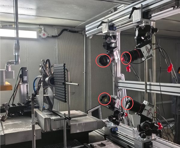 随后完成四台千眼狼PIV跨帧相机的空间布置(图4),采用多视角跨帧成像方案,使各相机视场在测量体积内形成充分重叠,从几何布局层面保证体速度反演所需的视差信息,同时兼顾空间分辨率与成像稳定性。